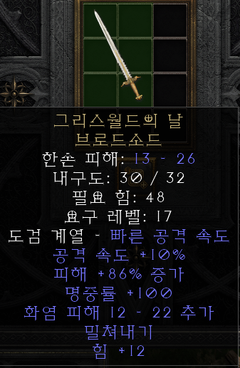 디아블로2 레저렉션 유니크 아이템 "그리스월드의 날 브로드소드" 정보 입니다.