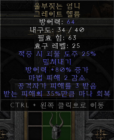 디아블로2 레저렉션 유니크 아이템 "울부짖는 엄니 그레이트 헬름" 정보 입니다.