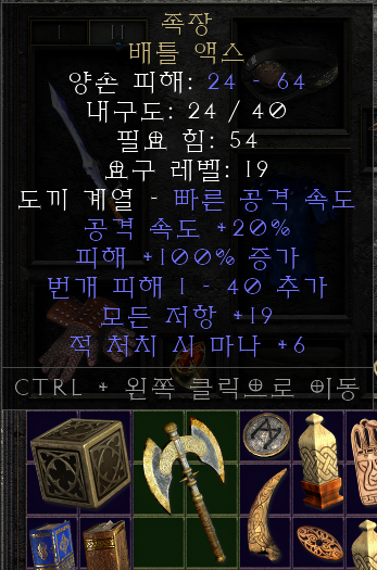 ※ 디아블로2 레저렉션 유니크 아이템 "족장 배틀 액스" 정보 입니다.
